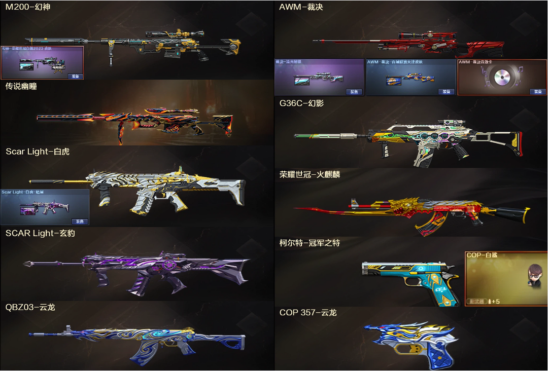 传说幽瞳❤幻神白鲨+裁决秘银百城音效卡❤白虎暗星玄豹+幻影QBZ云龙+冠军之特COP❤4防司雨魅影