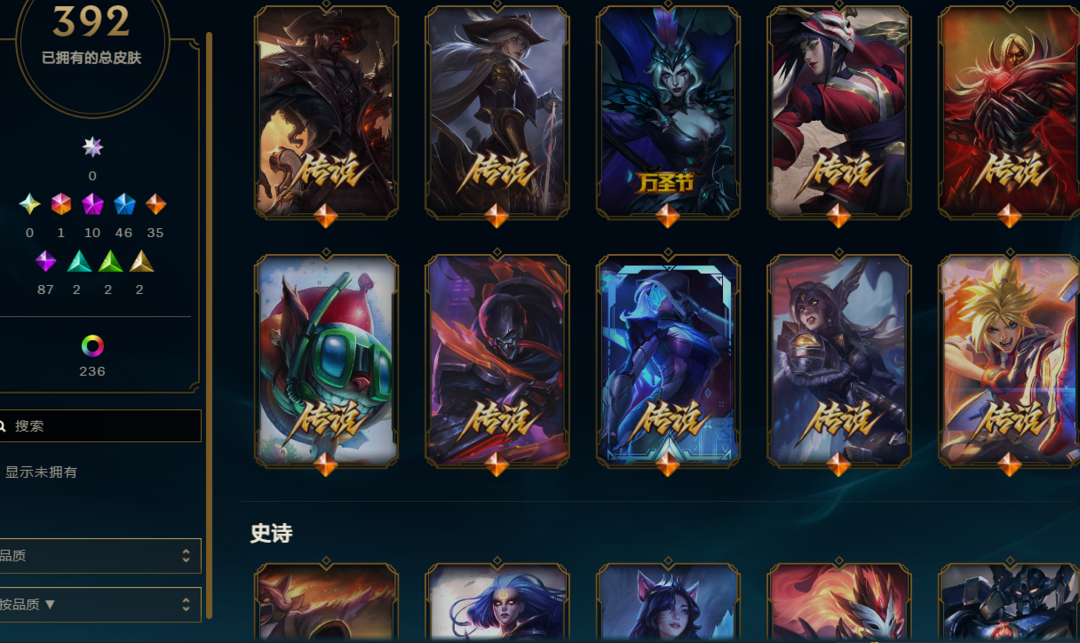 可排位400原皮,多神话至臻,ig全套,摄魂vn