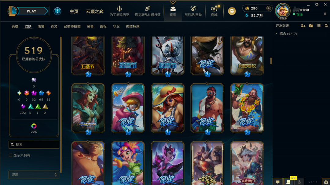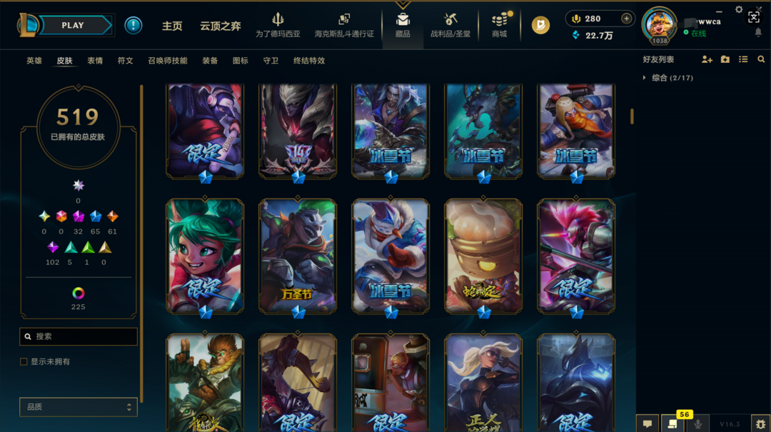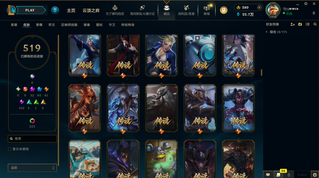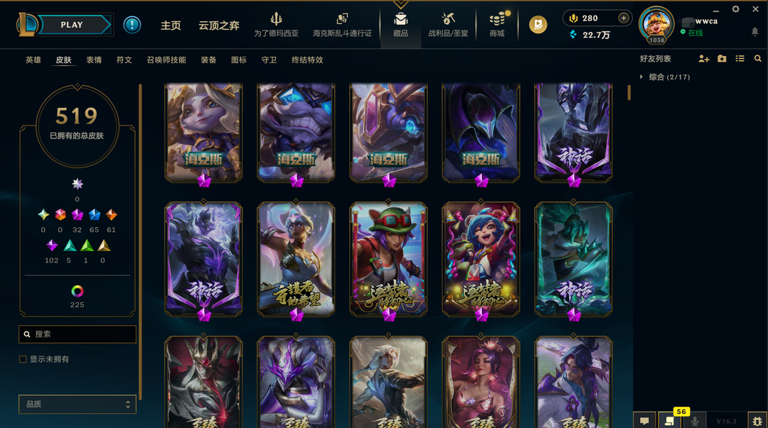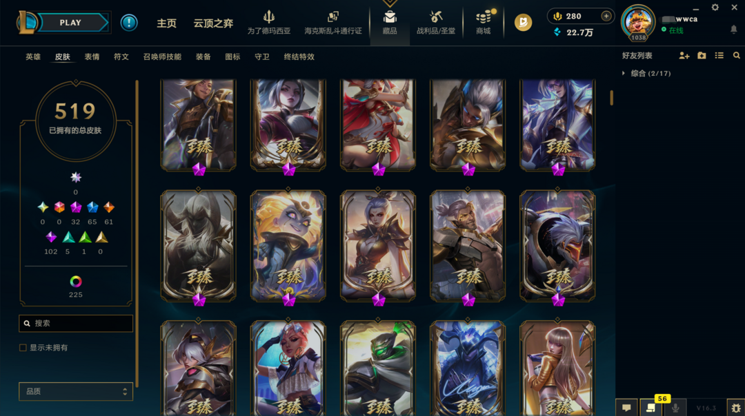 可排位300皮肤〓20至臻海克斯〓神王养蜂人〓神龙尊者〓黑夜亚索