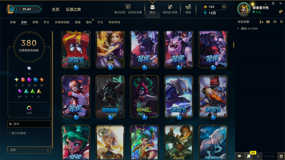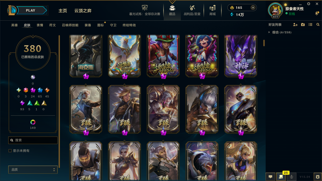 可排位400皮肤〓30至臻海克斯〓神拳天煞劫〓暗星泳池派对系列