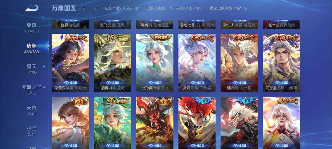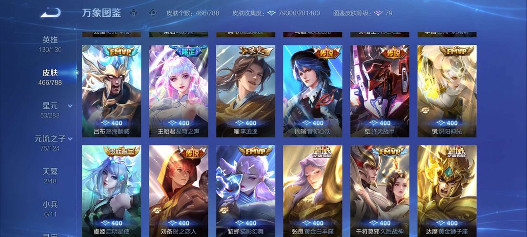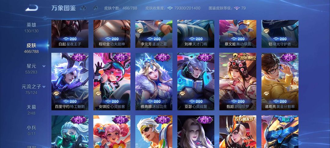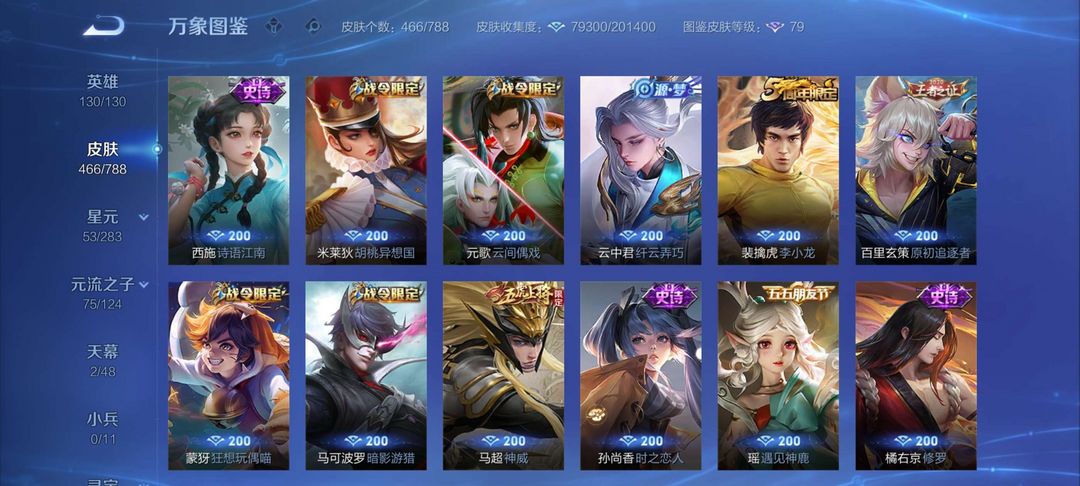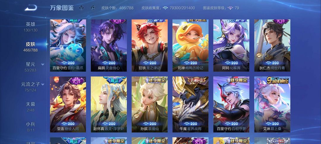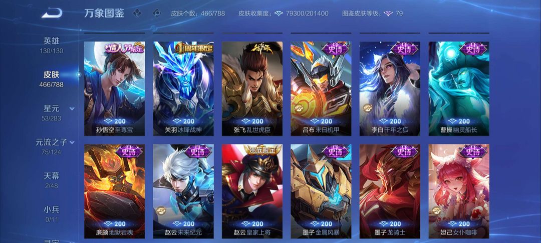 典藏皮肤6,关羽,李白,夏侯惇,铠,孙悟空,武则天皮肤