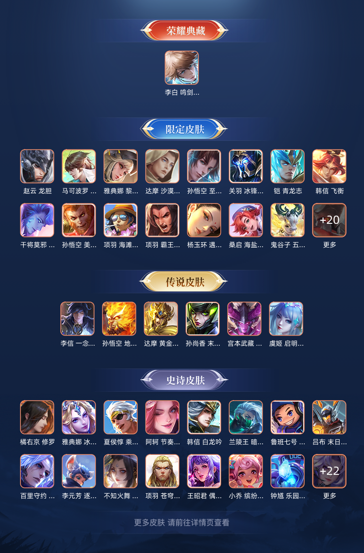 装备描述:>>>>>>毁号,涉及毁坏虚拟财产罪及计算机安全罪,请文明游戏素质游戏,让我们共建美好租号平台>>>>>> 本游戏账号: ,英雄多,皮肤多。典藏皮肤1个,感受典藏皮肤带来的优质体验快感,FMVP皮肤1个,尽情享受FMVP皮肤带来的主角光环, 私人所属英雄皮肤有:李白 鸣剑·曳影达摩 黄金狮子座||李信 一念神魔||孙尚香 末日机甲||孙悟空 地狱火||虞姬 启明星使||宫本武藏 地狱之眼马超 无双飞将鲁班大师 乓乓大师||达摩 沙漠行僧||关羽 冰锋战神||孙悟空 至尊宝||孙悟空 美猴王||鬼谷子 五谷丰年||李元芳 妄想特派||明世隐 疑决卦||明世隐 吟游魔法||桑启 海盐诗旅||嫦娥 拒霜思||韩信 飞衡||韩信 逐梦之影||白起 夜都怪侠||狄仁杰 魔术师||狄仁杰 阴阳师||米莱狄 御霄||米莱狄 胡桃异想国||阿古朵 江河有灵||刘禅 唤灵魔甲||项羽 海滩派对||项羽 霸王别姬||赵云 龙胆||赵云 皇家上将||鲁班七号 狮舞东方||蔡文姬 繁星吟游||干将莫邪 冰霜恋舞曲||甄姬 游园惊梦||盾山 圆桌骑士||裴擒虎 李小龙||铠 青龙志||雅典娜 黎明之约||钟馗