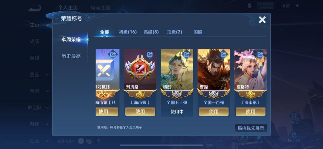 巅峰千强闪电框⭐️双小国杨戬曹操在榜⭐️历史多大国102对抗路⭐️省标夏洛特影在榜⭐️可排位禁巅峰