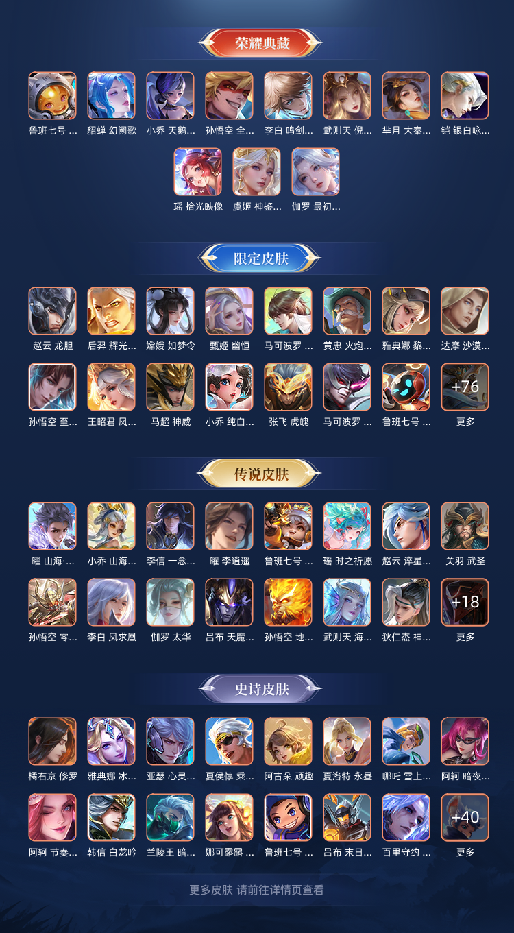 限制: 租号2次及以上 |装备描述: 珍品传说4 无双6 典藏11 传说80 史诗192 限定259 英雄128 皮肤581 稀有英雄11 贵族10级【珍品传说4】 嫦娥器灵落星盏 孙策时之奇旅 马可波罗怪盗基德 鲁班七号江户川柯南 【无双皮肤6】 曜器灵螭龙剑 甄姬雪境奇遇 不知火舞花合斗 韩信群星魔术团 妲己青丘九尾 小乔时之魔女 【荣耀典藏11】 伽罗最初的交响 瑶拾光映像 虞姬神鉴启示录 芈月大秦宣太后 铠银白咏叹调 貂蝉幻阙歌 李白鸣剑曳影 孙悟空全息碎影 武则天倪克斯神谕 小乔天鹅之梦 鲁班七号星空梦想 【传说皮肤80】 后羿神树通天 梦奇胖达荣荣 司空震愿照山河定 澜愿照九州拓 蔡文姬愿照福禄聚 女娲愿照千秋盛 妲己愿照众生和 虞姬愿照岁时盈 云缨幻光神枪 嬴政玄雷天君 王昭君映山客 桑启鸣野蒿 庄周牧神诗旅 张良黄金白羊座 百里守约碎云 兰陵王默契交锋 夏侯惇霜北刀 铠冥王哈迪斯 云中君群星魔术团 狄仁杰神器狴犴令 海月金乌负日 曜李逍遥 亚连落雪白狼 吕布曦玄引 貂蝉曦玄引 典韦战鼓燎原 赵云乘龙铭钟鼎 孙策乘龙淬吴钩 孙尚香乘龙问璇玑 马超琥珀纪元 铠琥珀纪