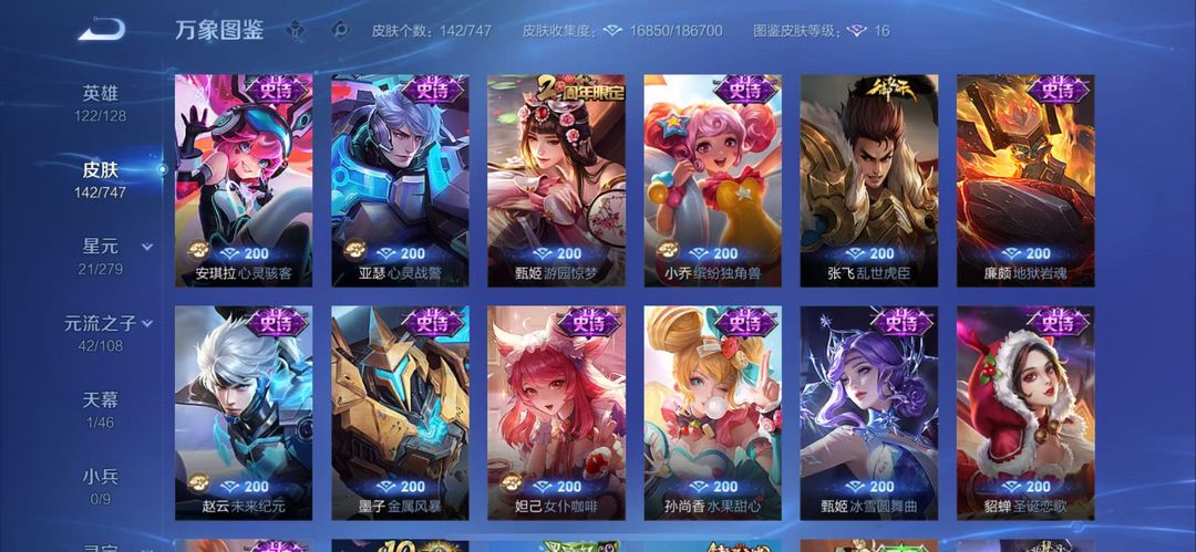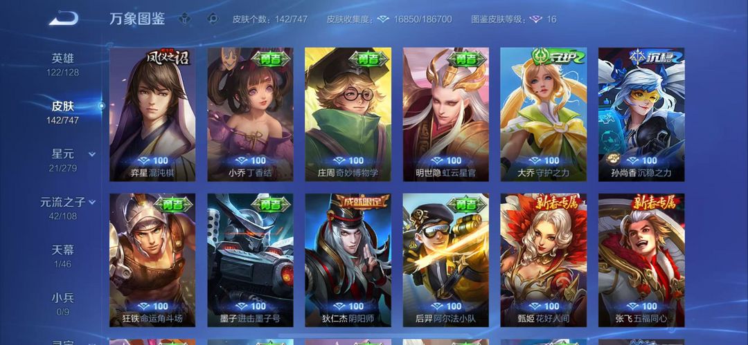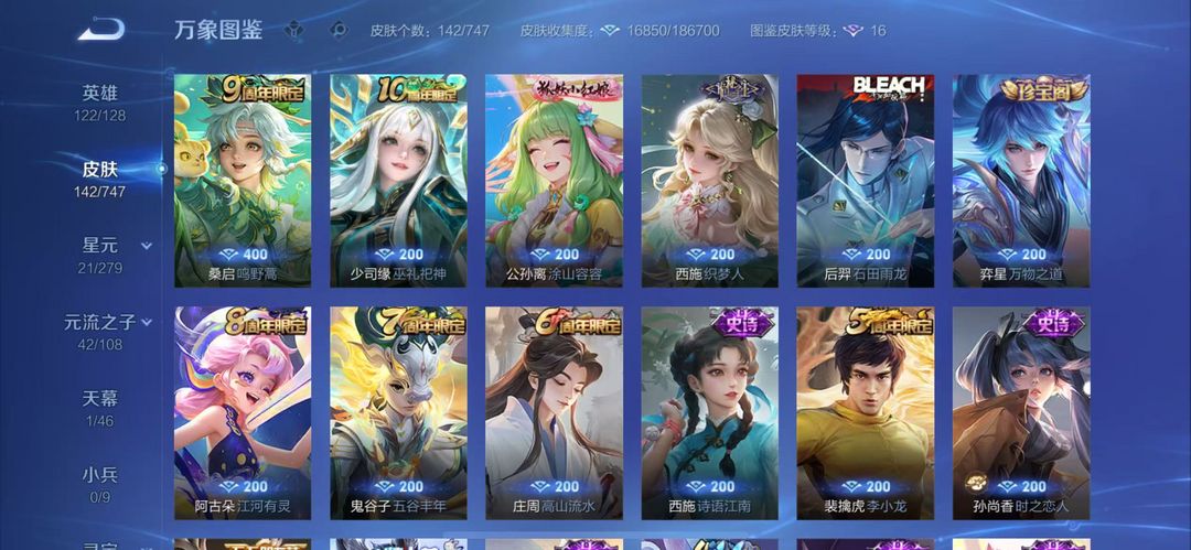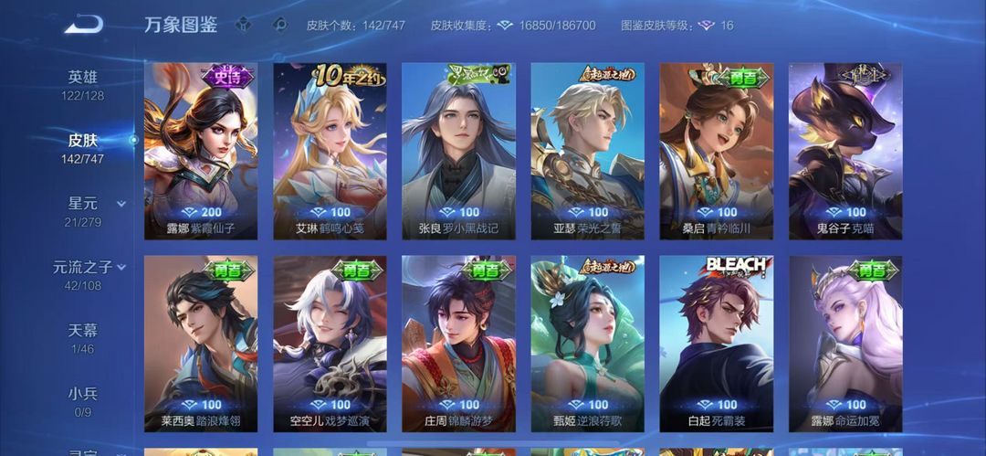 装备描述:王者荣耀优质账号出租!英雄122个,皮肤142款,含艾琳女武神、弈星万物之道等珍宝阁限定,还有9/10周年限定、BLEACH联动、狐妖小红娘联动皮肤,星元21款。账号配置拉满,稳定不顶号,性价比超高,欢迎咨询!