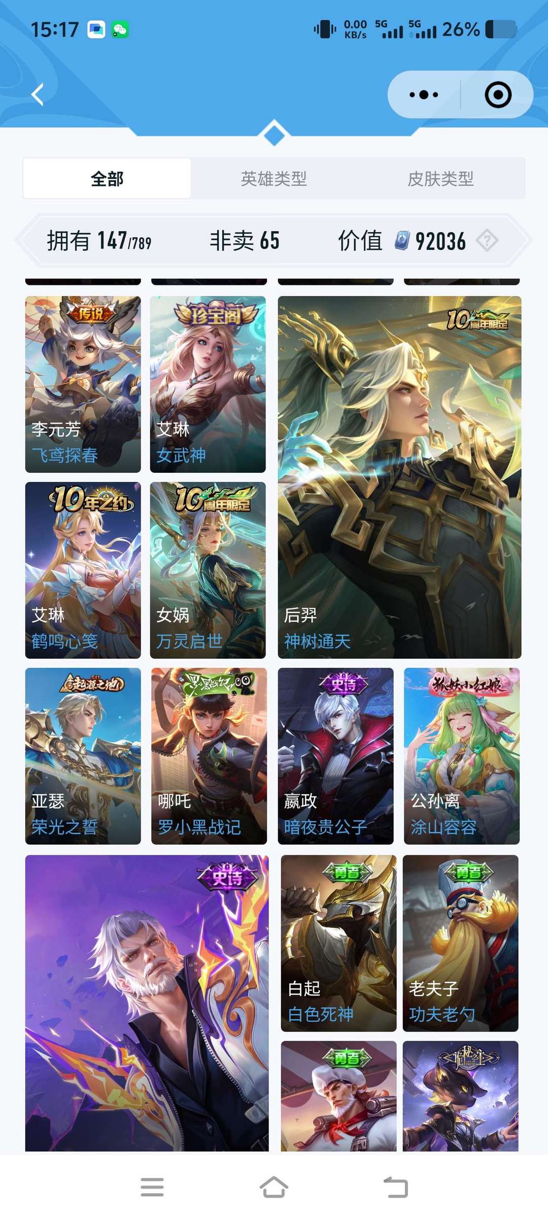 英雄全有熟练度,除了武则天英雄全有,皮肤都在照片里传说皮:地狱火 久胜战神 后羿 元芳等等