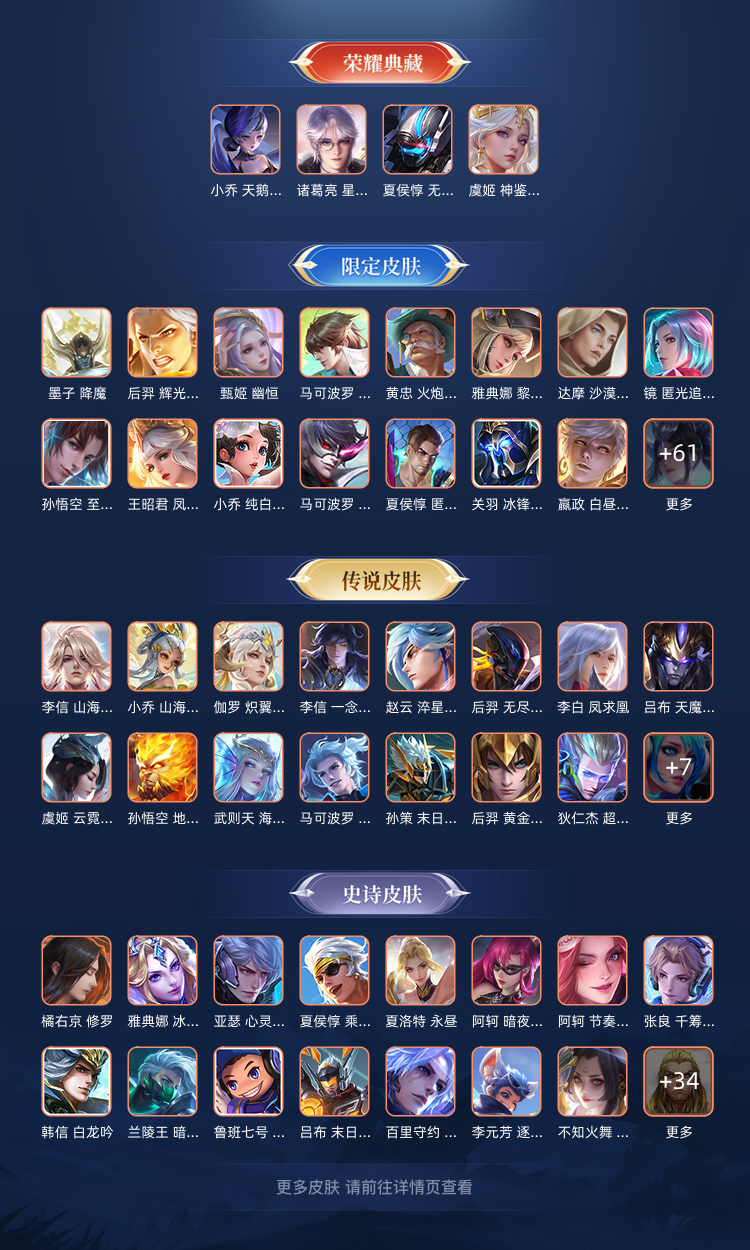 4个典藏。v9。目前星耀。400多个皮肤。全英雄。