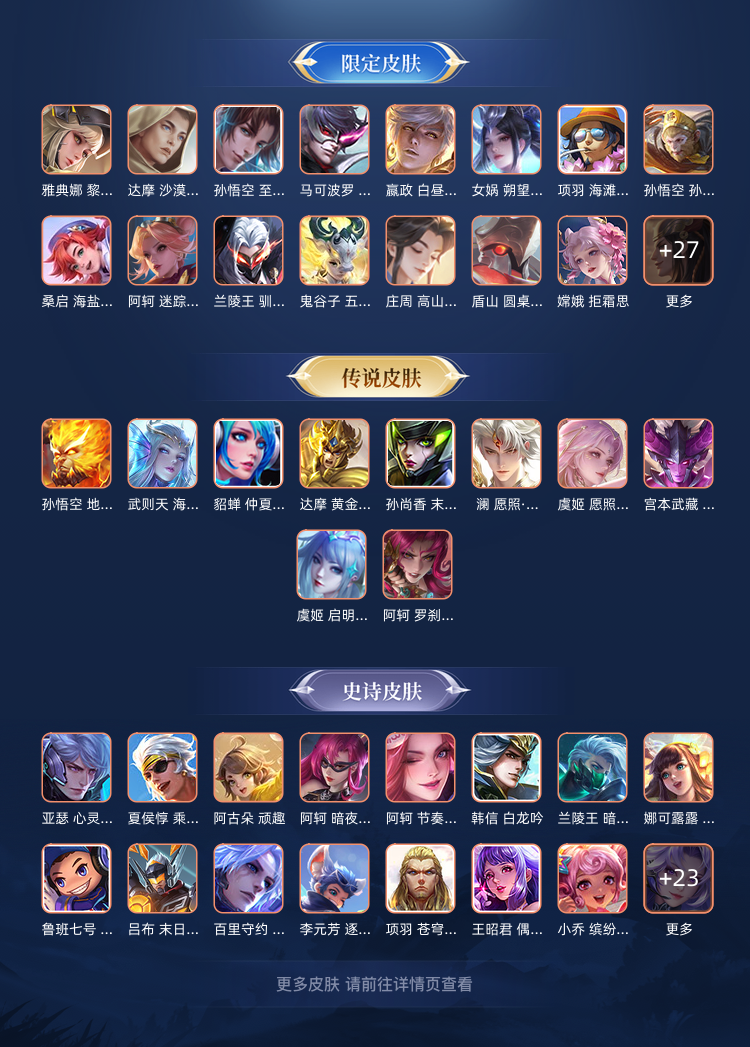 【V8 321皮】16传说/94史诗皮۞阿轲罗刹妄海۞澜/貂蝉/虞姬/云樱传说限定满英雄满铭文