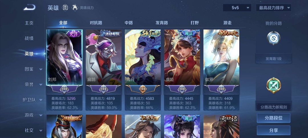 125英雄,88皮肤,可排位。皮肤很多,耀,虞姬,刘邦皮肤