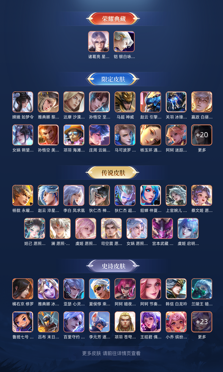 装备描述:有两个典藏,有一个小兵皮肤,还有龙年限定一套