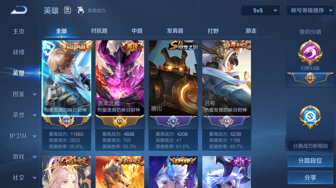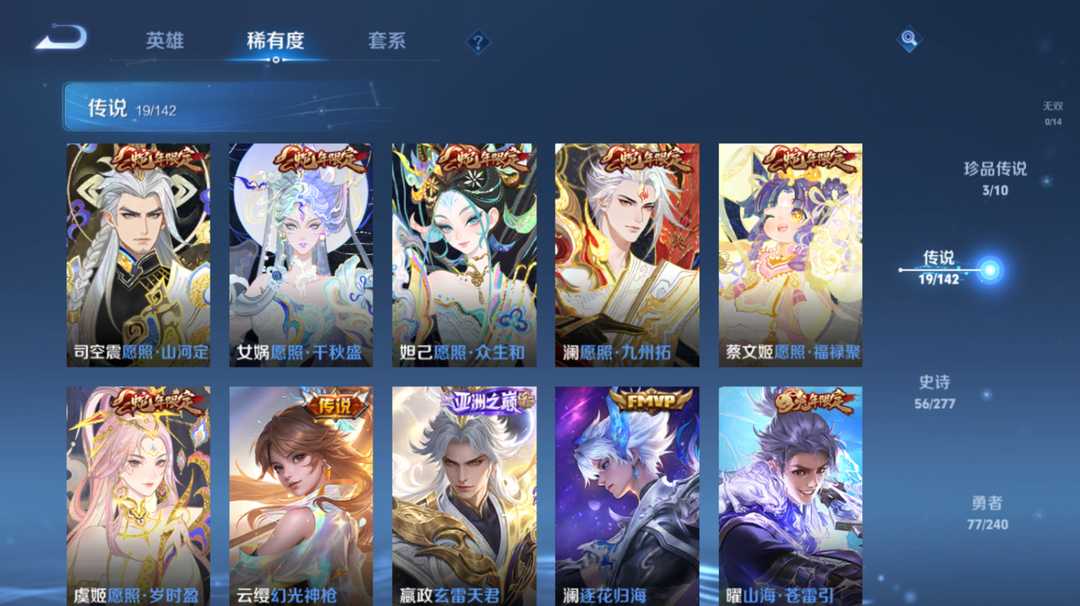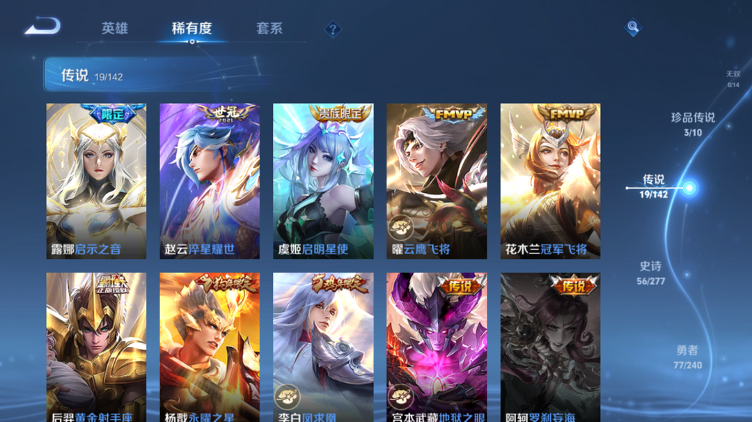 爽玩小号♥万战金标李白1.1w♥196皮v8♥李白典藏♥19传说♥云鹰飞将♥凤求凰♥
