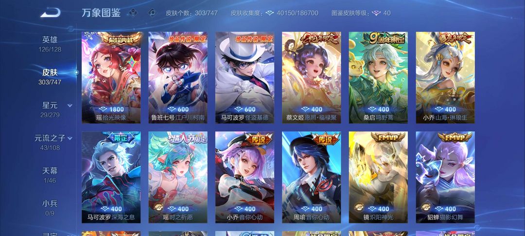 有瑶时之愿境和荣耀典藏,其他英雄部分有传说
