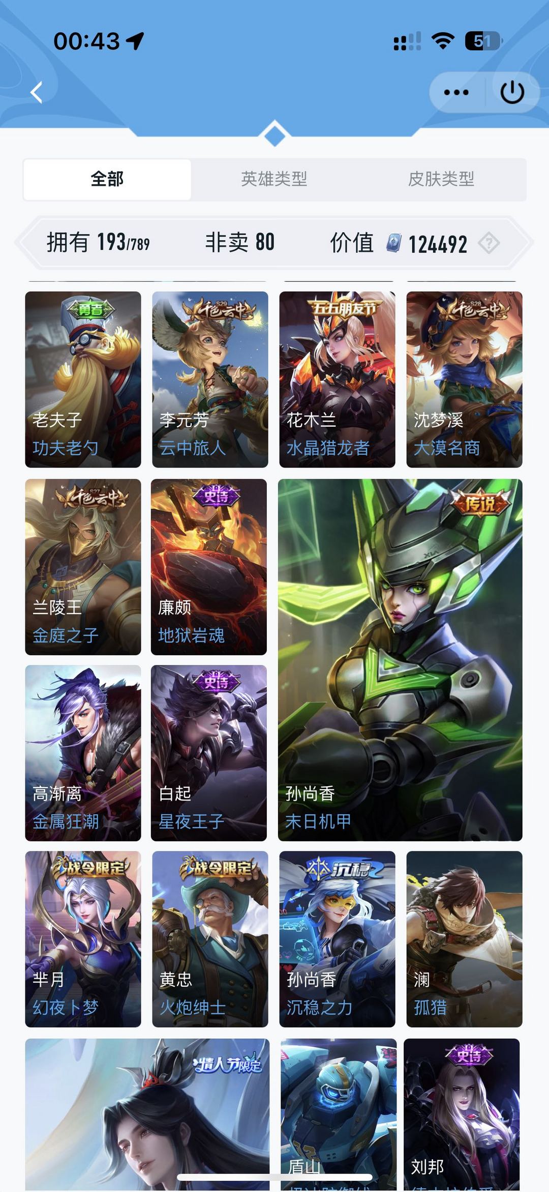 30级 铭文几乎全的 皮肤图里都全 大家可以受累自己看一下 实在是没时间玩 有喜欢的朋友自助哈哈