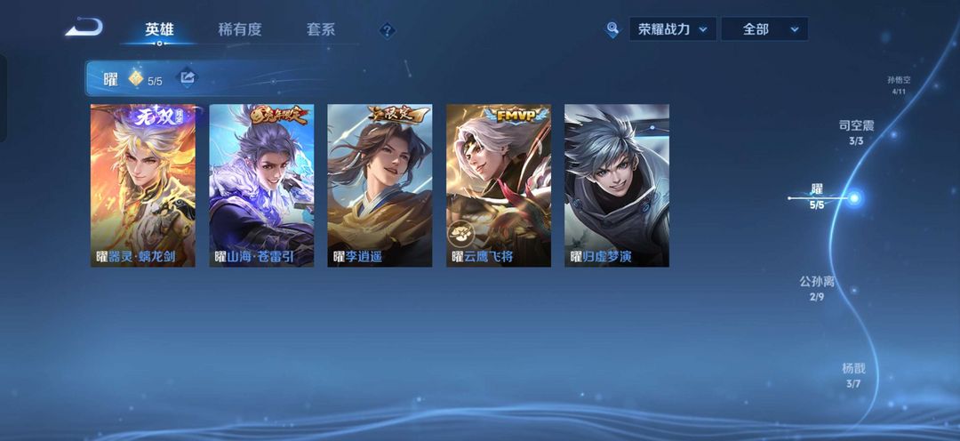 v9,铠,马超,司空震,曜,李信全皮,云缨马年限定,司空震霜北刀,孙悟空至尊宝零号齐天大圣澜蛇年限定