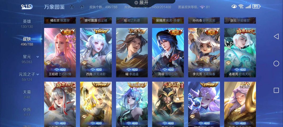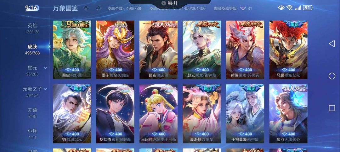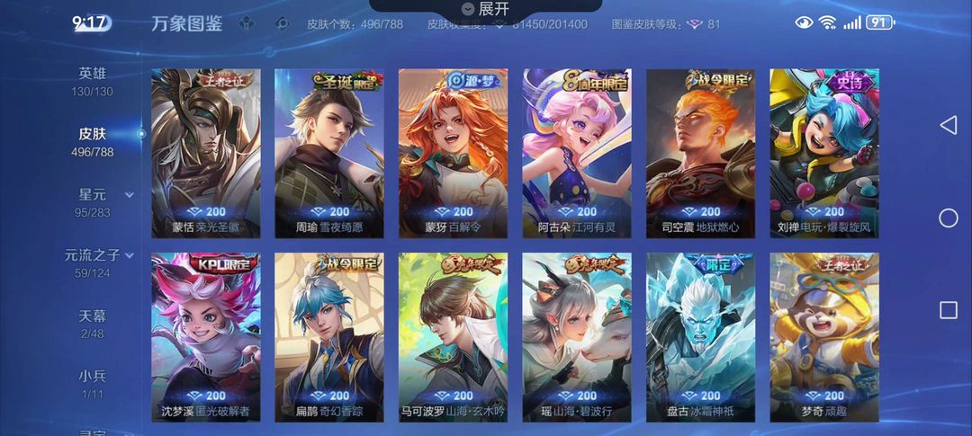 装备描述:v9李白全皮肤,武则天无双,柯南美少女联动全套,神器系列全套,兔年牛年年限全套,全英雄铭文,价格亲民