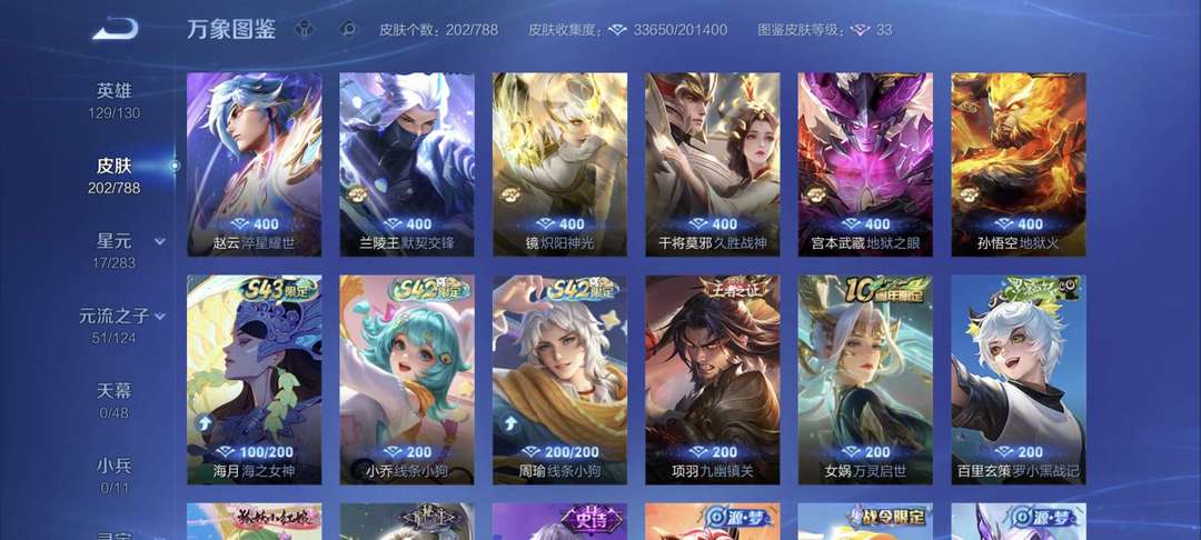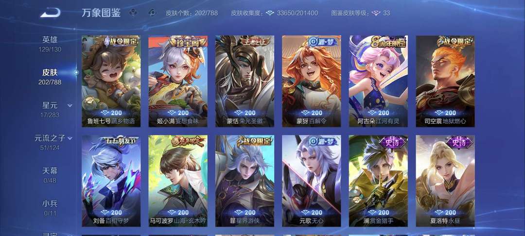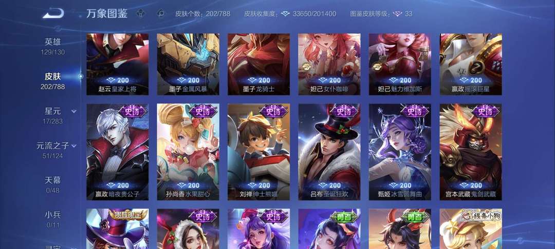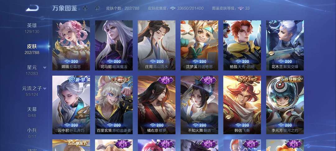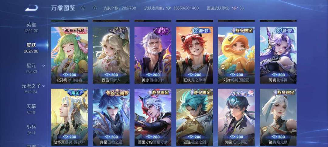 装备描述:17传说2星传说77史诗 ,129英雄202皮肤2星传说可排位
