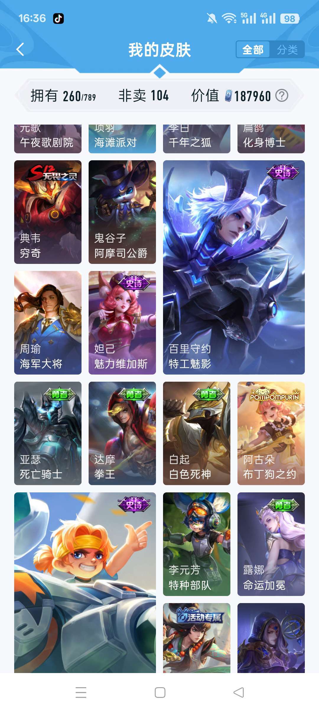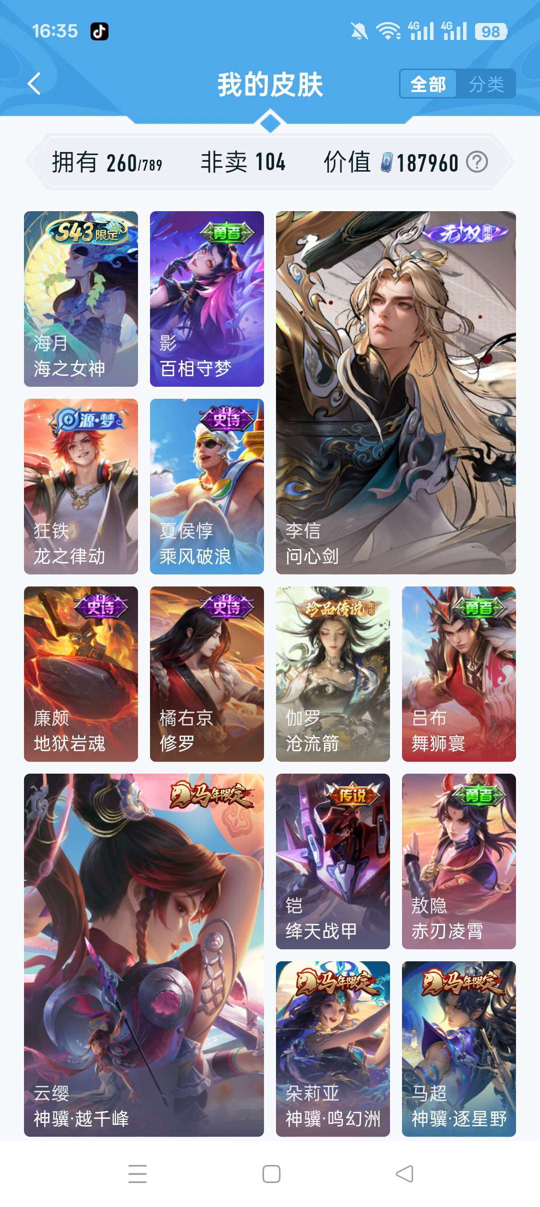 李白李信猴子无双,宫本伽罗双珍品,两典藏,马年限定全满在榜银标鲁班成吉思汗银标,打野精品皮肤号