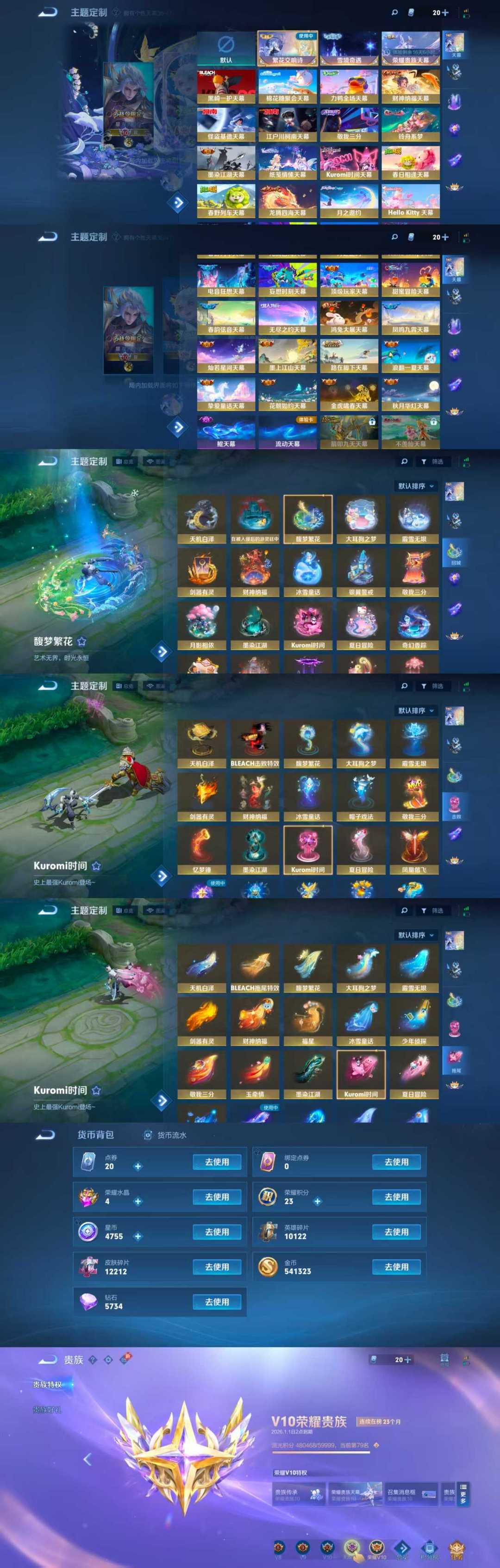 准满皮705⭐V10荣耀贵族⭐满典藏满珍品满无双⭐7小兵皮⭐全顶级极品号⭐满灵宝⭐极品按键天幕