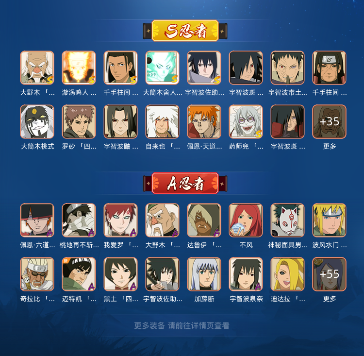 限制: 撤单率<75%才可租用此帐号装备描述:51S丨九喇嘛水门丨大筒木舍人须佐卡卡西须佐止水三代风影丨忍战带土丨死门凯不风不缘盾狗漂泊佩恩