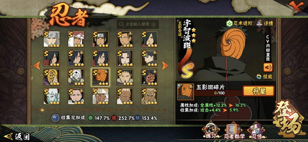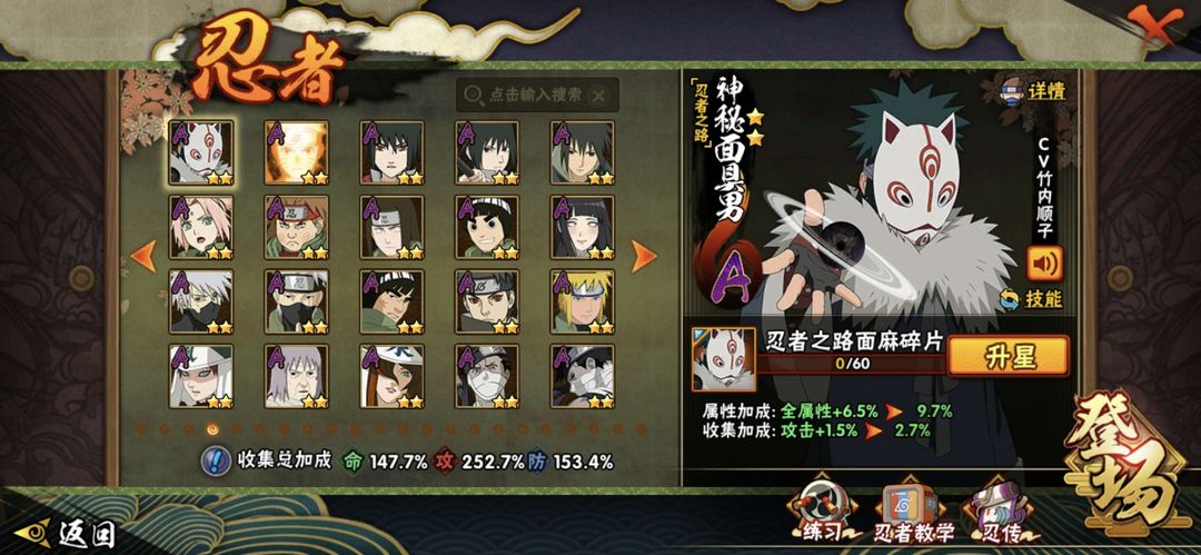 50S,60A,300+忍,2610w漂泊带土,新南,天道超,面麻,五影斑,舍人,止水,熊猫螃蟹万蛇