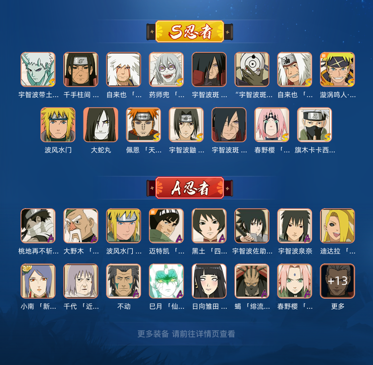 17s,30+A,阴水门,十尾带土,秽土斑等,一个账号两个区(宗家秘术和忍犬召唤),欢迎各位老板下单