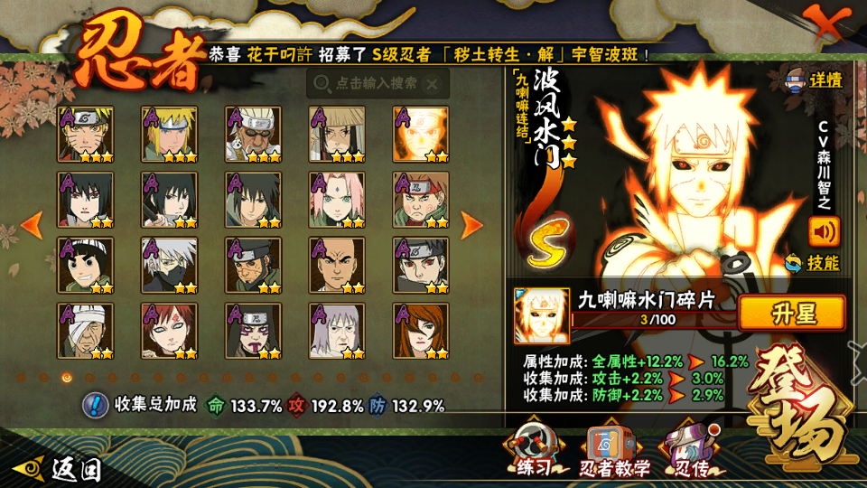 34S★九喇嘛水门★须佐卡卡西★天道超★忍战带土★秽土解斑★九喇嘛鸣人★永恒佐助★秽土鼬