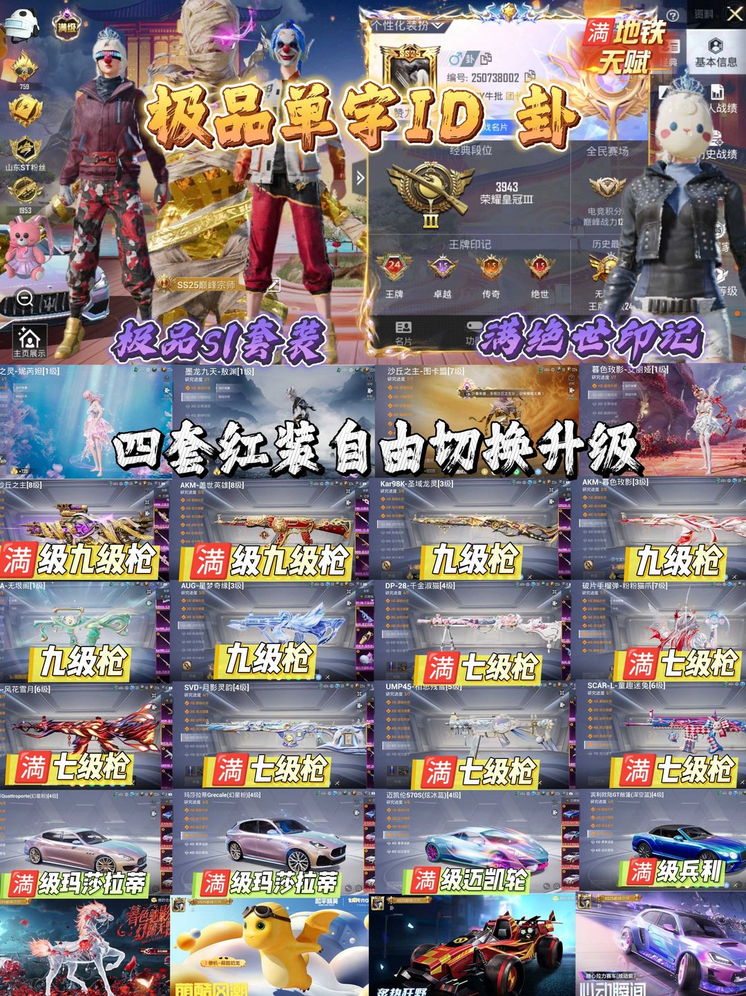 极品ID 卦 满级暮色 老s1套装 满绝世印记 金鞋 小丑 冰雪星梦奇缘 无限阁