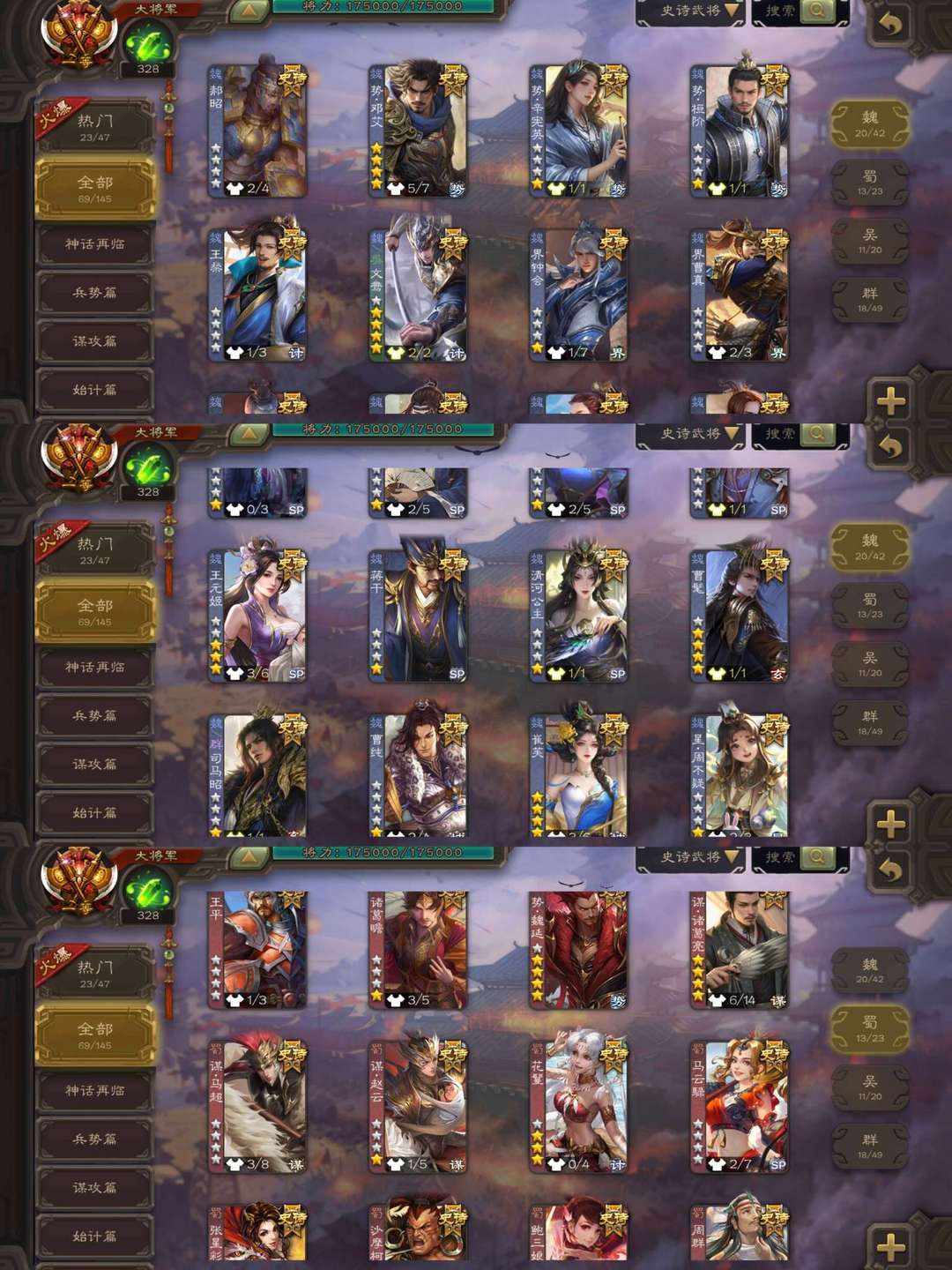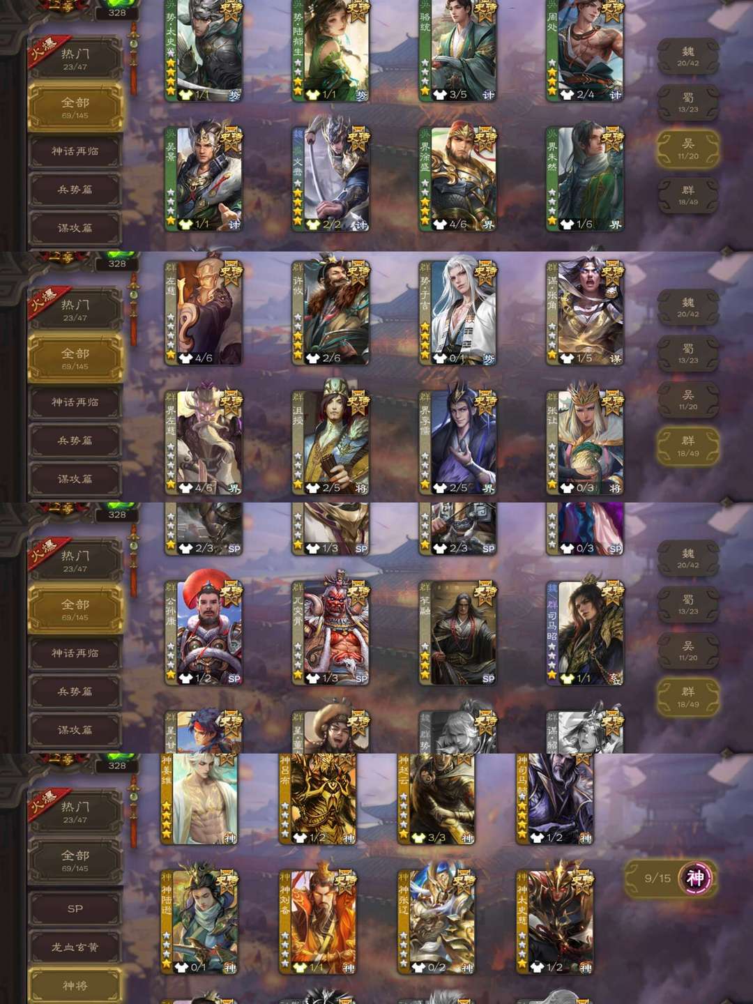 有卡♥一等大将军♥玉龙神姜维♥回廊五形态势太史慈♥回廊枭龙破渊曹髦♥新回廊势邓艾鲍三娘♥势魏延于吉♥