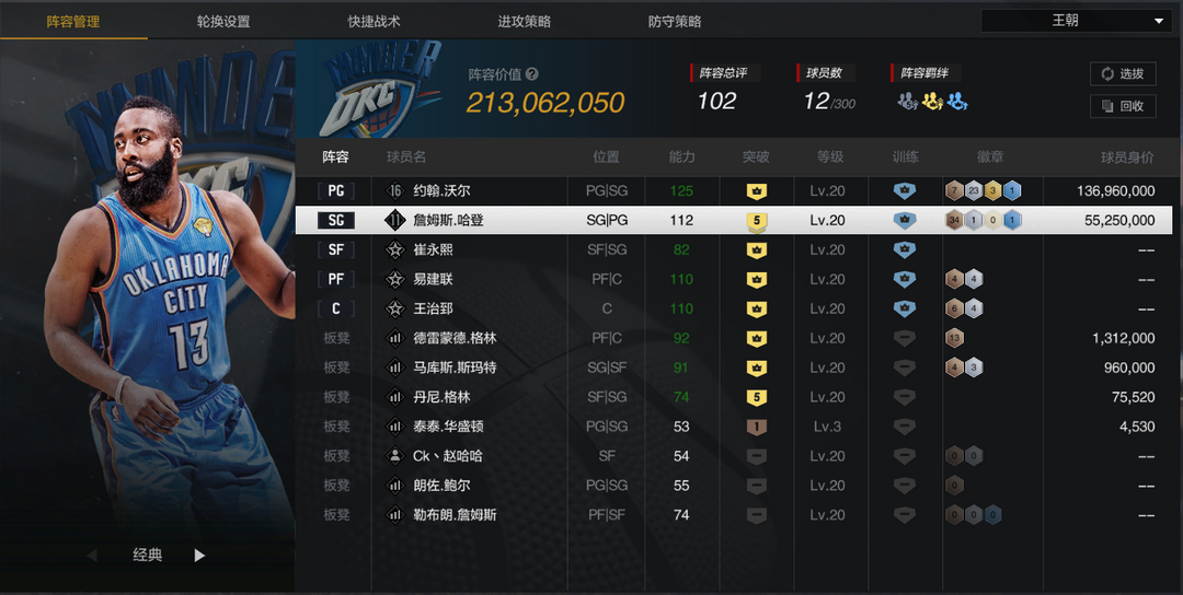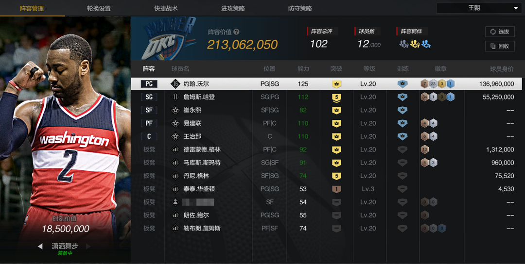 限制: 撤单率<50%才可租用此帐号装备描述:【10突时刻沃尔】【5突哈登】【10突阿联】【10突大致】【风骚运球】【天才控卫】