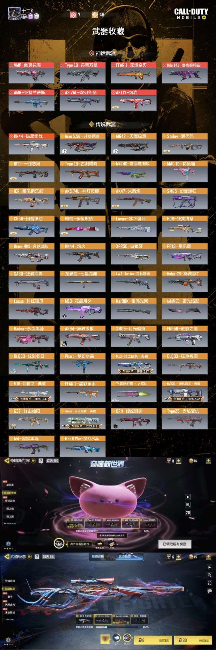 满级幽冥丹青♥雪林动能全套奇喵高达武道极意黑罗玆50橙战神♥满级幽灵无境暗夜亚特兰星月章圣诞冰下诡计